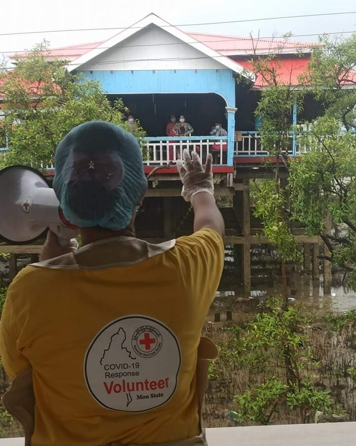 မွန်ပြည်နယ်အတွင်း ကိုဗစ်-၁၉ ရောဂါကာကွယ်ထိန်းချုပ်နိုင်ရေးအတွက် ကြက်ခြေနီစေတနာလုပ်အားရှင်များက ကူညီဆောင်ရွက်