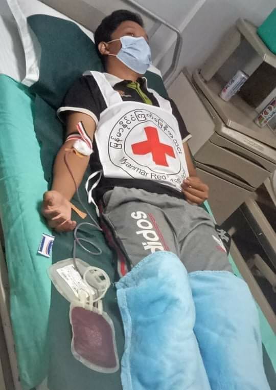 အရေးပေါ်သွေးလိုအပ်သည့် လူနာအတွက် ဒဂုံမြို့သစ် (မြောက်ပိုင်း)မှ ကြက်ခြေနီစေတနာလုပ်အားရှင်က သွေးလှူဒါန်း