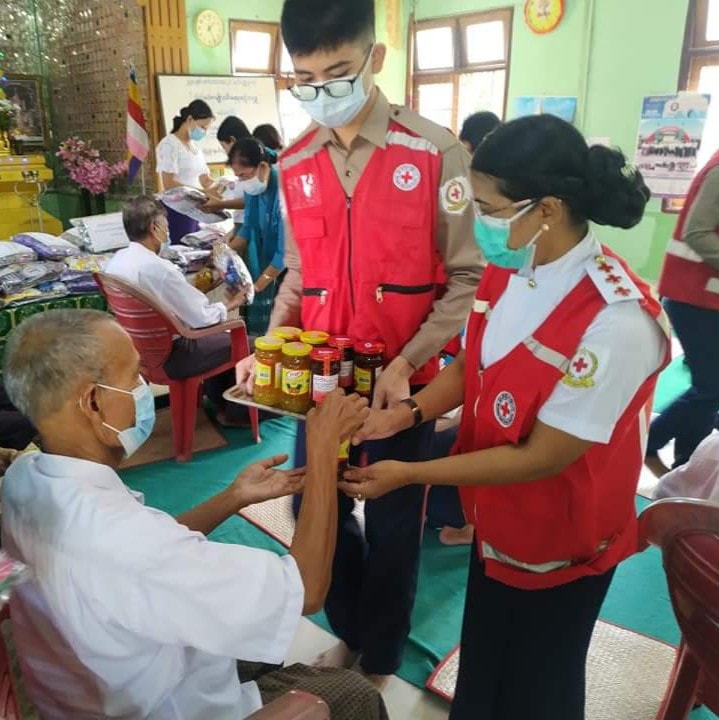 စစ်တွေဘိုးဘွားရိပ်သာရှိ သက်ကြီးရွယ်အိုများအား ကူညီထောက်ပံ့ပေးခြင်းလုပ်ငန်းများကို ကြက်ခြေနီစေတနာလုပ်အားရှင်များက လူမှုရေးအသင်းအဖွဲ့များနှင့် ပူးပေါင်း ဆောင်ရွက်