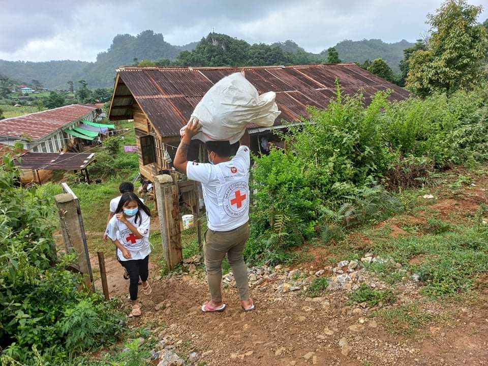 ကယားပြည်နယ်ရှိ တိုက်ပွဲရှောင်စခန်းများတွင် နေရပ်စွန့်ခွာပြည်သူများအား ကြက်ခြေနီက ကျန်းမာရေးအသိပညာပေးခြင်းနှင့် လိုအပ်သောစားသုံးကုန်ပစ္စည်းများထောက်ပံ့ကူညီ